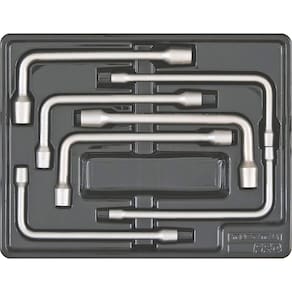 Bandeja em plástico termoformado.Após a fabricação, as chaves de roda são avaliadas nos quesitos torque e dureza, para atender aos requisitos da norma DIN 1711-1.Modelos e tamanhos dos mais variados para atender as muitas aplicações do setor de manutenção automotiva.As bocas das chaves de roda são verificadas com gabaritos calibrados, o que garante seu perfeito acoplamento nos parafusos. Afrouxar e apertar parafusos sextavados. As ferramentas são produzidas e testadas conforme normas específicas.
