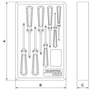 Bandeja em plástico termoformado.As hastes das chaves de fenda são testadas em máquina de ensaio específica, para verificar o perfeito balanço entre resistência mecânica e dureza.Os dimensionais das pontas são verificados com gabaritos-padrão calibrados e certificados, e a qualidade do fosfato é inspecionada ao microscópio.Apertar ou afrouxar parafusos de fenda trafix. As ferramentas são produzidas e testadas conforme normas específicas.