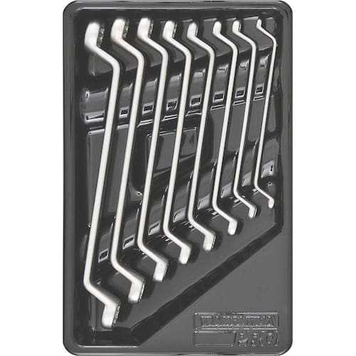 Bandeja em plástico termoformado.As chaves de aperto são produzidas em aço ligado com cromo vanádio (Cr-V), e apos submetidas a testes rigorosos de torque para atender a norma DIN 1711-1.O novo perfil Hyper Drive, em alguns modelos de boca tipo estrela, reduz a fadiga das chaves, prolongando sua vida útil.O teste de dureza é realizado em vários pontos para assegurar a resistência ao desgaste da chave durante o uso ininterrupto.Alguns tipos de chaves de aperto são fornecidos em bitolas métricas e em polegadas, para os diversos fixadores disponíveis.Afrouxar e apertar parafusos e porcas sextavadas e quadradas.As ferramentas são produzidas e testadas conforme normas específicas.