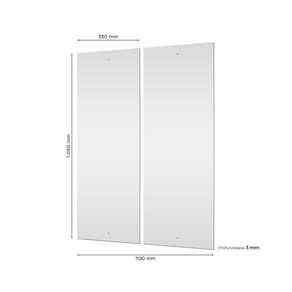 Renove seu roupeiro com o Módulo Espelho com as medidas (A x L) 105 x 35 cm, 3mm de espessura. Com design moderno e funcional, este acessório é perfeito para dar um toque de elegância e praticidade ao seu espaço. Fácil de instalar, o Módulo Espelho possui o tamanho ideal para atender às suas necessidades. Aproveite e transforme seu quarto em um ambiente ainda mais sofisticado. Altura: 105 Ambiente Principal: Quarto Complexidade da Montagem: Baixa: pode ser montado por uma pessoa sozinha Cor: Prata Cor do Produto: Prata Cor Predominante: Prata Escala de Brilho: Brilhante Itens Inclusos: 1 Módulo e Manual de Instruções Largura: 35 Manual de Montagem e Instalação: https://cdn2.madeiramadeira.com.br/atributo/henn-briz-quarto-adulto/1368704-o930-64-kit-espelho-1050-x-350-x-3-com-2-unidades-henn.pdf Material Principal: Vidro Necessita Montagem: Sim Origem do Produto: Nacional Peso: 5.5 Profundidade: 0.3 Recomendações de Uso, Manutenção e Limpeza: Para limpeza de seu móvel, use uma flanela seca ou umedecida. Não utilize produtos químicos que possam danificar o produto. Sistema de Montagem: Parafusos.