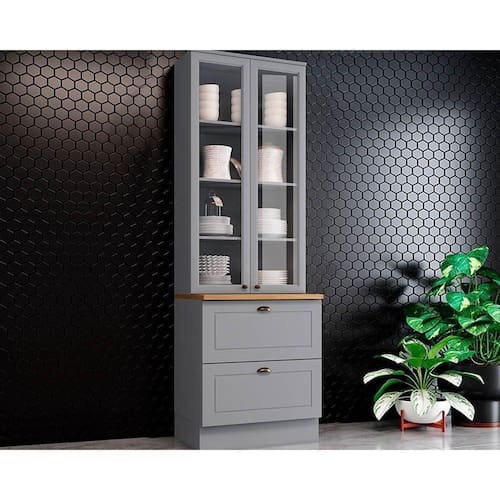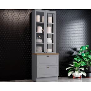 Cristaleira de Cozinha Americana c/ 2 Portas (2 c/Vidro) c/ 2 Gavetas 71,5cm Cinza/Nature - Henn