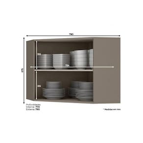 CARACTERÍSTICAS DE MÓVEIS Tipo de Estrutura do Móvel - 100% MDF Tipo de Pintura - UV Tipo de Acabamento da Pintura - Alto Brilho/Fosca Características de móveis - Armário Duplo - Aéreo de Canto Oblíquo - Canto Oblíquo Tipo de puxador - Metálico Quantidade de Prateleiras - 1 Prateleira Quantidade de Portas - 2 Portas de Abrir Garantia - 3 meses