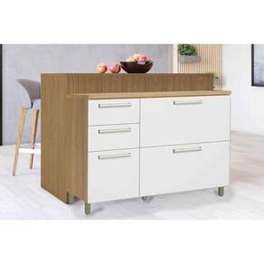 Balcão de Cozinha c/ Tampo Burguesa Premium c/ 2 Portas e 3 Gavetas 120cm Freijo/Grafite - Nesher