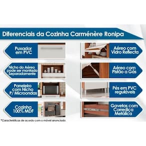 Material de Estrutura - 100% MDF Tipo de Móvel - Paneleiro Duplo Tipo de Pintura - Pintura em UV (Ultravioleta) Tipo de Acabamento da Pintura - Semi Brilho Tipo dos Pés - ABS/PVC Vantagens Extras dos Moveis de Cozinha - Vantagens dos Modulados