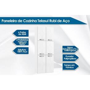 MÓVEIS GERAIS (CARACTERISTICAS E BENEFICIOS) Tipo de Estrutura do Móvel - 100% aço Características de móveis - Paneleiro Duplo Diferenciais dos Móveis - Desmontável Tipo de Pintura - Eletrostática a Pó Tipo de Acabamento da Pintura - Semi Brilho Cor Principal - Branco Tipo de puxador - Polipropileno Quantidade de Prateleiras - 3 Prateleiras Quantidade de Portas - 6 Portas de Abrir