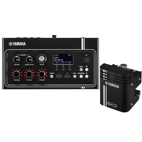 O EAD10 captura e monitora, com alta qualidade, os sons de toda a bateria, bastando conectar o sensor ao bumbo. Com apenas o botão da unidade principal, você controla vários efeitos e altera o som da bateria do jeito que quiser. Você pode usar o EAD10 para tocar com suas músicas favoritas salvas no seu celular/ tablet, basta um cabo AUX ou cabo USB. O EAD10 aceita até 6 triggers e pads, incluindo o trigger do sensor no bumbo. É possível incorporar sons de percussão, sons eletrônicos, loops e muito mais, aumentando suas possibilidades.O módulo de bateria eletrônica EAD10 aprimora a forma de praticar, gravar e tocar com sua bateria acústica.Características- 50 Scenes predefinidas e 200 do usuário. Transforme dinamicamente os sons da sua bateria acústica.- Basta conectar o sensor EAD10 ao bumbo para captar os sons da bateria em geral.- Com o aplicativo , você grava, edita e envia vídeos seus tocando bateria.Especificações- Marca: Yamaha- Modelo: EAD10- Efeitos: Mic: 21, Trigger: 10- Cenas: Predefinição: 50 / Usuários: 200- Ressonância: 11- Efeitos: Mic: 21 / Gatilho: 10- Polifonia máxima: 64- Vozes: 757- Tempo de Gravação: Memória Interna: Aprox. 1 min 30 seg. / Flash USB: Aprox. 90 min/ arquivo- Formato de Gravação: WAV (44,1 kHz, 16 bits, estéreo)- Limite de Importação: Até 100- Formato de amostra de reprodução: 44,1 kHz- Tempo: 30 - 300 BPM, função tap tempo - Assinaturas de compasso: 1/4 a 16/4, 1/8 a 16/8, 1/16 a 16/16 - Subdivisões: Acentos, semínimas, colcheias, semicolcheias e tercinas de colcheia - Funções: Ajuste de sensibilidade do gatilho, áudio USB / MIDI, equalizador de fone de ouvido, metrônomo, desligamento automático- Conectores: DC IN (12 V), PHONES (Fone stereo padrão), AUX IN (mini stereo), OUTPUT L/MONO, R (fone mono padrão), USB TO DEVICE, USB TO HOST, FOOT SW, TO SENSOR UNIT A/B- Voltagem: 100/240V (Bivolt)Conteúdo da Embalagem- 01 Módulo Unidade Principal- 01 Unidade do Sensor- Acessórios: Manual do proprietário, PA-150B (ou equivalente recomendado pela Yamaha), suporte do módulo, parafusos borboleta do suporte do módulo (× 2), cabos conectores (1 par), braçadeiras de cabos (× 3), almofadas adesivas (× 2)Dimensões/Peso- Dimensões unidade principal (LxAxP) 26 x 6,3 x 13,8 cm / 654 g- Dimensões unidade do sensor (LxAxP) 7,6 x 8,8 x 7,8 cm / 464 g- Dimensões da Embalagem (AxLxP): 18 x 23 x 46 cm / 2,9 kg*imagens meramente ilustrativas
