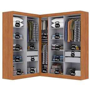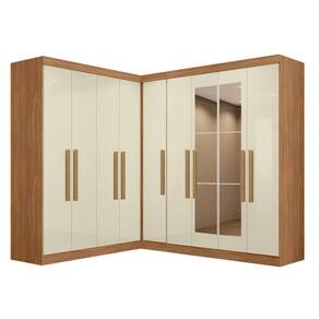 Esta modulação conta com um Canto Paris 4 portas e um Paris 4 portas, ambos com amplo espaço interno, muito bem distribuído com prateleiras para melhor aproveitamento, cabideiro em madeira e uma estrutura versátil que acomoda roupas longas.