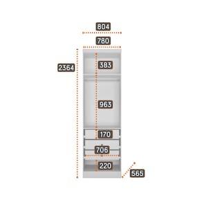 Produto 100 MDF, 2 portas com puxadores com acabamento amadeirado, dobradi?as de press?o 35mm, 3 gavetas internas com puxadores e corredi?as telesc?picas, cabideiro em alum?nio, pe?a ideal para voc? criar a modula??o perfeita para seu ambiente.