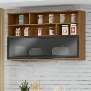 Módulo de Cozinha Armário Aéreo 120cm com Porta de Vidro - Toscana Freijó - Sua rotina mais prática, sua cozinha mais bonita.