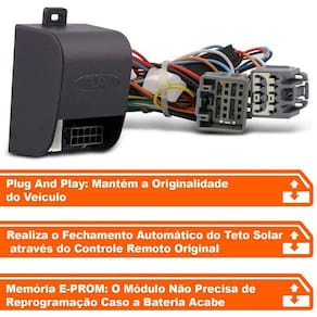Módulo de fechamento Teto Solar Tury LVX 5.16Q - COMPASS módulo de fechamento Teto Solar Tury LVX 5.16Q - COMPASS Módulo de Fechamento de Teto Solar Tury LVX 5.16 são acessórios importantes para o conforto e experiencia ao dirigir. Desenvolvido com o que há de mais avançado no que diz respeito a automação de fechamento de teto solar, com ele você terá uma experiência de alta qualidade ao dirigir seu automóvel. O módulo LV 5.9 R com este dispositivo você poderá fechar o teto solar do seu veículo pelo controle remoto de forma automática. Esse modulo precisa fazer parte do sistema de teto solar do seu carro. Compatível com Veículos: - Compass A partir de 2017 até 2021 Especificações técnicas: Realiza o Fechamento Automático do Teto Solar Através do Controle Remoto Número de Fios para a Conexão: 2 Fácil Instalação Através de Conectores que Preservam a e Integridade da Fiação Memória E-PROM: Não é Preciso Reprogramar o Módulo Caso a Bateria Acabe ou Seja Desconectada Mantém as Funções do Veículo, Inclusive a Proteção Contra Esmagamentos Oferece Conforto, Praticidade e Segurança ao Acionar o Teto Solar Consumo em Stand by: Inferior a 1mA Conforme Exigência das Montadoras Baixo Consumo que Preserva a Bateria Tensão: 10V a 16V Conteúdo da Embalagem: 01 Módulo 01 Chicote com conectores 01 Manual de Instalação 01 Certificado de Importante: de 2 Ano. Valor Unitário. Imagens Meramente Ilustrativas. Recomendamos que a instalação seja feita por profissional especializado e não nos responsabilizamos pelo mau uso do produto. Atenção: garante a proteção contra esmagamentos exigida pela Resolução CONTRAN 468/13 e pelo Código de Trânsito Brasileiro. Marca: Não Informado