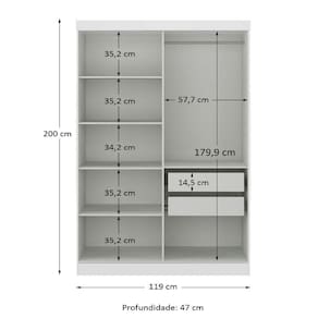 Não realizamos montagem, desmontagem, por escadas ou içamento. É responsabilidade do cliente verificar se as dimensões do produto são compatíveis com portas, elevadores e corredores. Evite imprevistos: confira todos os detalhes antes de concluir sua compra. MEDIDAS:: A = 200 cm L = 119 cm P = 47 cm | PESO:: 75,90kg | PESO SUPORTADO:: 112kg | PRATELEIRAS SUPORTAM ATÉ:: 6kg | CABIDEIRO SUPORTA ATÉ:: 12kg | GAVETA SUPORTA ATÉ:: 3kg | MODELO:: Modulo Madrid Guarda Roupas 4 Portas e 2 Gavetas 2m | MARCA:: Maxel | MATERIAL DA ESTRUTURA:: MDP | ESPESSURA DO MATERIAL DA ESTRUTURA:: 12mm | TIPO DE PINTURA:: Verniz alto brilho | ACABAMENTO:: Texturizado | PORTAS:: 2 | TIPO DE PORTA:: Bater | GAVETAS:: 2 | CABIDEIROS:: 1 | CORREDIÇA:: Metálica | DOBRADIÇAS:: Metálicas | MATERIAL DO CABIDEIRO:: Madeira | PUXADOR:: Plástico | PRATELEIRAS:: 4 | PÉS:: Não possui | DIFERENCIAL:: Amplo espaço de armazenamento, acabamento em verniz texturizado e verniz brilho nas portas, produto versátil. | ITENS INCLUSOS:: 1 Modulo Guarda Roupas, 1 Manual de Montagem, 1 Kit Parafusos | INSTRUÇÕES E CUIDADOS:: Para maior durabilidade, recomendável que a limpeza dos móveis seja feita com pano limpo e levemente umedecido em água e sabão neutro. Em seguida, deverá ser passado um pano limpo e seco | GARANTIA:: 3 meses | AVISO:: Importante sobre a : A é realizada até a portaria ou porta de entrada do indicado, desde que o acesso seja permitido. Para locais com portaria, a será feita no piso térreo. | Altura: 200 | Inclui manual de montagem: sim | Largura: 119 | Materiais da estrutura: MDP | Profundidade: 47 | Requer montagem: sim | Cor: Branco