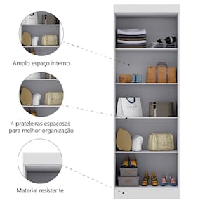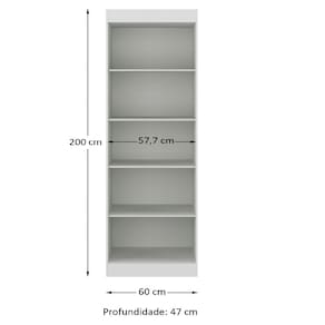 MEDIDAS: A = 200 cm L = 60 cm P = 47 cm PESO: 41,85kg PESO SUPORTADO: 112kg PRATELEIRAS SUPORTAM ATÉ: 6kg MODELO: Modulo Madrid Guarda Roupas 2 Portas 2m MARCA: Maxel MATERIAL DA ESTRUTURA: MDP ESPESSURA DO MATERIAL DA ESTRUTURA: 12mm TIPO DE PINTURA: Verniz alto brilho ACABAMENTO: Texturizado PORTAS: 2 TIPO DE PORTA: Bater DOBRADIÇAS: Metálicas PUXADOR: Plástico PRATELEIRAS: 4 PÉS: Não possui DIFERENCIAL: Amplo espaço de armazenamento, acabamento em verniz texturizado e verniz brilho nas portas, produto versátil. ITENS INCLUSOS: 1 Modulo Guarda Roupas, 1 Manual de Montagem, 1 Kit Parafusos INSTRUÇÕES E CUIDADOS: Para maior durabilidade, recomendável que a limpeza dos móveis seja feita com pano limpo e levemente umedecido em água e sabão neutro. Em seguida, deverá ser passado um pano limpo e seco GARANTIA: 3 meses