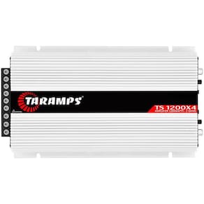 Modulo de potencia taramps ts1200x4 1200wrms 4c 2r 14,4vdc Especificacao: Ts 1200x4 - 2 ohms módulo amplificador taramps classe d 4 canais de 300 watts rms apresentamos o novo ts 12004 2 ohms . Sua nova entrada de fio de 4 canais individuais e acionamento automático o torna ideal para este tipo de aplicação, dispensando o uso de adaptadores.Com 1200 watts de potência distribuídos em 4 canais e possibilidade de conexão em bridge, ele pode ser utilizado com diversos modelos de alto-falantes, drivers e super tweeters.Além disso, conta com as tradicionais entradas rca, ajuste de ganho e crossover fixo hpf, lpf e full , característicos dos produtos taramps.Outro ponto a ser destacado é o conector de alimentação e saída, que além de robusto, garante mais praticidade e segurança na instalação.Tudo isso e muito mais, para que o seu prazer em ouvir música se torne cada vez maior. Imagens meramente ilustrativas.,:informações técnicasversão 2 ohms potência nominal 14,4vdc2 ohms: 1200w rms 4 x 300w rms 4 ohms: 740w rms 4 x 185w rms 2 canais bridged4 ohms: 1200 w rms 2 x 600w rms número de canais 4sensibilidade de entrada rca - 4v min. / 250mv máx. fio - 10v min. / 3v máx. relação de sinal/ruído90dbresposta de frequência gama completa - 8hz 25khz -3db passagem alta cruzada hpf 90hz -12db/8u00aa fixopassagem baixa cruzada lpf 90hz -12db/8u00aa fixoimpedância de entrada 10k ohms rca tensão de alimentação mínima9vcctensão de alimentação máxima16 v ccconsumo em repouso0,9aconsumo máximo musical55adimensões lxaxp 138x48x250mmpeso 1,24kgean 7908706601022