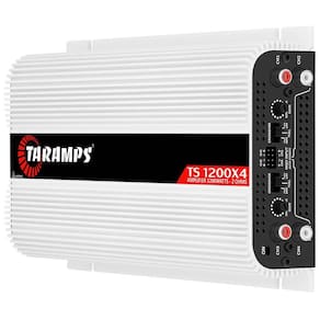Ts 1200x4 - 2 ohms módulo amplificador taramps classe d 4 canais de 300 watts rms apresentamos o novo ts 12004 2 ohms . Sua nova entrada de fio de 4 canais individuais e acionamento automático o torna ideal para este tipo de aplicação, dispensando o uso de adaptadores.Com 1200 watts de potência distribuídos em 4 canais e possibilidade de conexão em bridge, ele pode ser utilizado com diversos modelos de alto-falantes, drivers e super tweeters.Além disso, conta com as tradicionais entradas rca, ajuste de ganho e crossover fixo hpf, lpf e full , característicos dos produtos taramps.Outro ponto a ser destacado é o conector de alimentação e saída, que além de robusto, garante mais praticidade e segurança na instalação.Tudo isso e muito mais, para que o seu prazer em ouvir música se torne cada vez maior. Imagens meramente ilustrativas.,:informações técnicasversão 2 ohms potência nominal 14,4vdc2 ohms: 1200w rms 4 x 300w rms 4 ohms: 740w rms 4 x 185w rms 2 canais bridged4 ohms: 1200 w rms 2 x 600w rms número de canais 4sensibilidade de entrada rca - 4v min. / 250mv máx. fio - 10v min. / 3v máx. relação de sinal/ruído90dbresposta de frequência gama completa - 8hz 25khz -3db passagem alta cruzada hpf 90hz -12db/8u00aa fixopassagem baixa cruzada lpf 90hz -12db/8u00aa fixoimpedância de entrada 10k ohms rca tensão de alimentação mínima9vcctensão de alimentação máxima16 v ccconsumo em repouso0,9aconsumo máximo musical55adimensões lxaxp 138x48x250mmpeso 1,24kgean 7908706601022