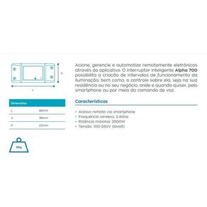 Módulo Inteligente Wifi 1 Canal 10A App Tuya Alpha700 Aitek Inteligente Wi-Fi Controlar o funcionamento dos aparelhos através de um smartphone ou tablet utilizando WiFi é um dos projetos de automação mais requisitados. Quando se fala em automação residencial, uma das primeiras coisas que vem à mente é: acionamento de lâmpadas através de WiFi. Se você procura uma solução simples, prática e de ótimo custo benefício para controlar remotamente lâmpadas e alguns equipamentos domésticos, este produto é uma excelente opção. Para tornar o seu dia a dia mais versátil, adquira o Inteligente Wi-Fi. Comando de Voz: Mãos livres para gerenciar seus dispositivos através de comandos de voz. Compatível com Google Home e Alexa da Amazon.Agendamentos: Defina os horários de funcionamento desejados.Compartilhamento: Compartilhe o controle com os membros da sua família, para aproveitar todos os recursos juntos. Controle pelo App: SmartLife ou NovaDigital. Características do Produto: Aviso Sobre o Produto: Imagem ilustrativa.Tipo: Touch Wi-Fi.Modelo: MS-101.Voltagem: 100 240V AC.Corrente Máx: 10A.Padrão Wi-Fi: IEEE 802.11 b / g / n.Frequência: 2,4GHz. Compatibilidade: Android e iOS.App do Produto: SmartLife ou NovaDigital.Material utilizado na Fabricação: Plástico ABS, Metal e Circuito eletrônico. Disponível na Cor: Branca Fabricado na China. Tens inclusos: 01 Módulo Wi-Fi de 1 Canal. Marca: Não Informado