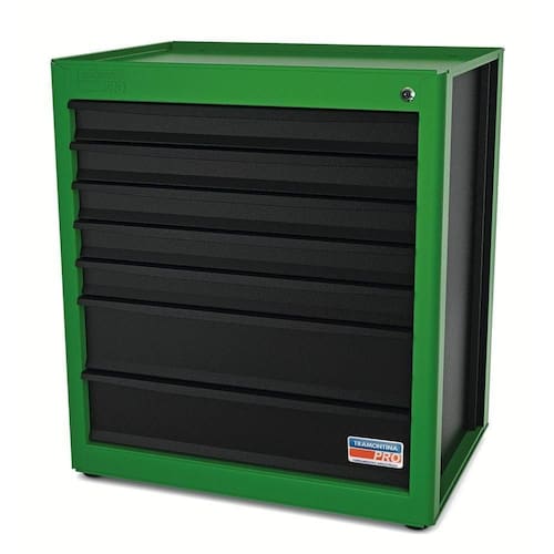Estrutura em chapas de aço conformadas. 7 gavetas com corrediças telescópicas. Tranca para as gavetas. Pintura eletrostática. Capacidade de carga máxima gavetas com altura de 75 mm: 20 kg. Capacidade de carga máxima gavetas com altura de 155 mm: 30 kg. Espessuras das chapas do corpo e gavetas: 1.2 mm.Utilizado para o armazenamento de ferramentas e base de trabalho para manutenção de peças.As corrediças telescópicas garantem deslizamento suave e maior abertura para as gavetas, quando comparadas com corrediças tradicionais.Com 4 pés para regulagem de altura, para compensar irregularidades no piso.Móduloversátil que permite a montagem de bancadas com layout e composições diversas.A capacidade de carga estática total depende da configuração escolhida para a bancada.Acompanha manual de instruções para auxiliar a montagem do módulo com o restanteda estrutura da bancada.Capacidade de carga e resistência da estrutura comprovadas através de testes práticos.