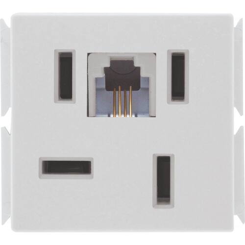 Para receber e realizar ligações de telefones fixos com maior eficiência, utilize o Módulo para Tomada de Telefone 4P e RJ11 Tramontina Aria Branco é a escolha certa para você. Adaptável para diferentes tipos de tomadas telefônicas, ele é fabricado em termoplástico antichama, vem na cor branca e conta com acabamento brilho, características que garantem ambientes muito mais agradáveis. A escolha ideal para completar as placas da linha Aria! Orientações Compatível somente com placas da linha Aria. Observações A instalação e segurança: É importante que o produto seja instalado por profissional habilitado. Antes de instalar, desligue a energia elétrica. Características Gerais EAN13 7891435937381 DUN14 17891435937388 NCM 8536.90.90 Peso Líquido 0,0230 kg. Peso Bruto 0,0235 kg. Metragem 0,000252 m³. Dimensões Embalagem (Compr. X Larg. X Alt.) 140x 90x 20 mm. Dimensões Produto (Compr. X Larg. X Alt.) 46x 40x 30 mm. Cor 1 FFFFFFF Hexa