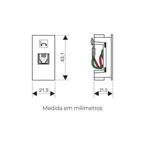 Principais Características: - Dimensões AxLxP mm : 43,1x21,5x21 - Referência: 06220643 - Cor: Branco - Garantia: 5 anos junto ao fabricante - Acabamento: Acetinado - Certificação: ISO 9001 - Conector da Tomada: RJ11 - Linha: Habitat/Elegance - Material: Plástico - Quantidade de Vias: 4 Vias - Tipo: Módulo Tomada para Telefone