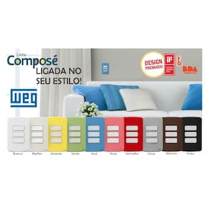 Modulo Tomada RJ11 4F Branco Compose Weg Com design contemporâneo e linhas que combinam com o seu estilo, a Composé é a nova linha de Tomadas & Interruptores da WEG. São 10 opções de cores para deixar a sua casa do seu jeito, sem deixar de lado a funcionalidade e a qualidade já reconhecidas da marca WEG.