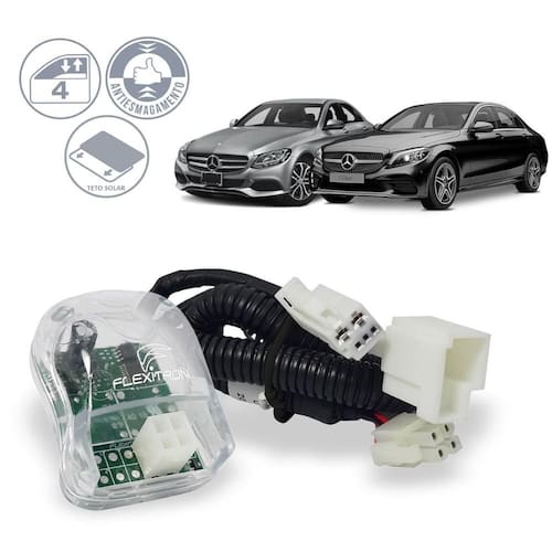 O módulo Flexitron dedicado para Mercedes-Benz C180 C200, tem como função a automação dos vidros elétricos e teto proporcionando conforto e segurança total aos motoristas e passageiros. Em um só dispositivo, conta com um Fechamento e Abertura dos Vidros Elétricos com Antiesmagamento, Fechamento do Teto Solar.