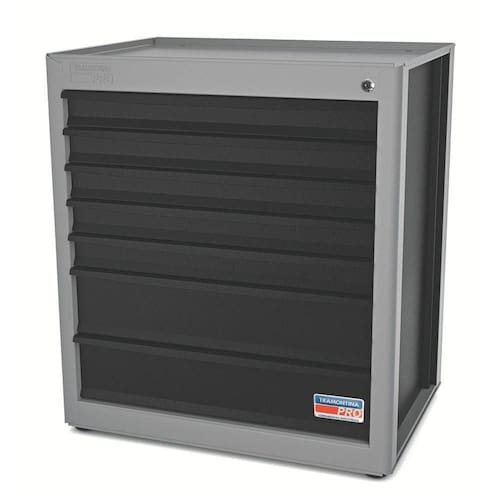 Estrutura em chapas de aço conformadas. 7 gavetas com corrediças telescópicas. Tranca para as gavetas. Pintura eletrostática. Capacidade de carga máxima gavetas com altura de 75 mm: 20 kg. Capacidade de carga máxima gavetas com altura de 155 mm: 30 kg. Espessuras das chapas do corpo e gavetas: 1.2 mm.Utilizado para o armazenamento de ferramentas e base de trabalho para manutenção de peças.As corrediças telescópicas garantem deslizamento suave e maior abertura para as gavetas, quando comparadas com corrediças tradicionais.Com 4 pés para regulagem de altura, para compensar irregularidades no piso.Móduloversátil que permite a montagem de bancadas com layout e composições diversas.A capacidade de carga estática total depende da configuração escolhida para a bancada.Acompanha manual de instruções para auxiliar a montagem do módulo com o restanteda estrutura da bancada.Capacidade de carga e resistência da estrutura comprovadas através de testes práticos.