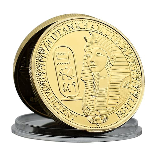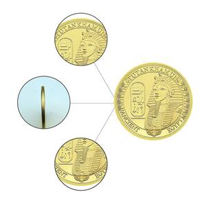 Material: ferro Peso: 35 g Tamanho: 4 x 0,3 cm Embalagem: 1 x moeda Design egípcio antigo: esta moeda comemorativa apresenta a imagem icônica de Tutancâmon, um dos faraós mais famosos do antigo Egito, junto com inscrições hieroglíficas e um símbolo da cultura egípcia. Artesanato detalhado: Feita de ferro durável com acabamento banhado a ouro, esta moeda exibe detalhes intrincados do rosto de Tutancâmon e artefatos da era egípcia antiga, oferecendo apelo estético e histórico. Símbolo da História: Como uma homenagem à mitologia egípcia antiga, esta moeda representa o rico legado da civilização egípcia e suas figuras lendárias, incluindo o famoso Tutancâmon. Perfeita para colecionadores: esta moeda é uma excelente adição a qualquer coleção focada na história antiga ou na mitologia egípcia. Imprescindível para entusiastas da história, arqueólogos e colecionadores. Símbolo comemorativo: ideal como homenagem à cultura egípcia antiga, esta moeda pode ser exibida em sua casa ou escritório como uma peça histórica fascinante.