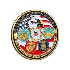 Material: ferro Peso: 35 g Tamanho: 4 x 0,3 cm Embalagem: 1 x CoinPatriotic Military Tribute — Esta moeda comemorativa apresenta orgulhosamente os emblemas dos cinco ramos das Forças Armadas dos Estados Unidos: Exército, Marinha, Força Aérea, Corpo de Fuzileiros Navais e Guarda Costeira, simbolizando unidade e orgulho nacional. Design impressionante de águias e bandeiras — A parte frontal exibe uma poderosa silhueta de águias carecas com o fundo e as estrelas da bandeira americana, representando liberdade, força e sacrifício. Artesanato de alta qualidade — Feita de ferro durável com detalhes em tom dourado em relevo e cores vivas de esmalte, esta moeda foi finamente feita para colecionadores e patriotas. Mensagem significativa — A borda da moeda traz a inscrição sincera “Serei eternamente grato por seu serviço e seu sacrifício”, tornando-a um comovente sinal de agradecimento. Tamanho de tela padrão — Medindo 4 cm de diâmetro e 0,3 cm de espessura, com um peso de 35 g, esta moeda colecionável é perfeita para exibição, transporte ou inclusão em uma coleção de memorabilia militar.