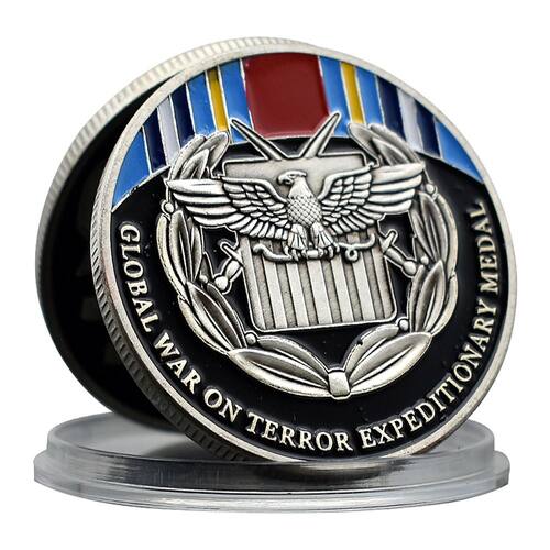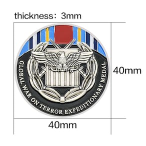 Material: ferro Peso: 35 g Tamanho: 4 x 0,3 cm Embalagem: 1 x moeda Comemoração da Guerra Global contra o Terror: Esta moeda comemorativa é uma homenagem aos soldados que serviram na Guerra Global contra o Terror, com o emblema da Medalha Expedicionária, que reconhece o serviço prestado no conflito. Design e artesanato premium: feita de ferro durável, a moeda apresenta um design intrincado com cores vibrantes, exibindo o emblema das Águias e fitas militares, simbolizando bravura e sacrifício. Símbolo de excelência militar: gravada com a “Medalha Expedicionária da Guerra Global contra o Terror”, esta moeda é um reconhecimento significativo da dedicação e do serviço daqueles que serviram nesta campanha militar crítica. Perfeita para colecionadores militares e veteranos: uma peça preciosa para veteranos, militares da ativa e colecionadores, esta moeda é uma excelente adição a qualquer coleção de memorabilia militar. Compacta e exibível: com um tamanho de 4x0,3 cm e pesando 35g, esta moeda é perfeita para exibição, tornando-a um símbolo duradouro de honra e excelência militar.