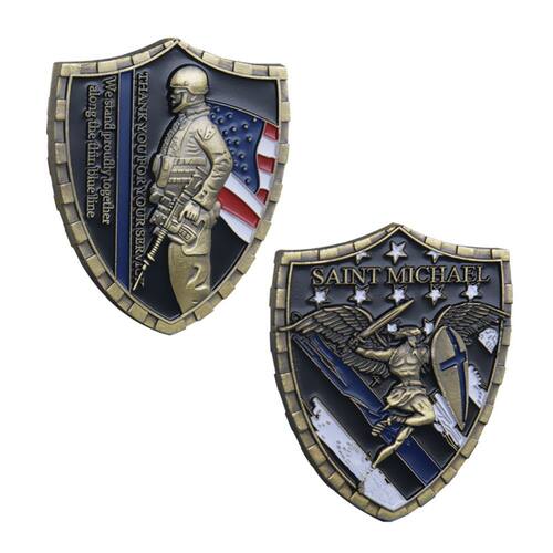 Material: ferro Peso: 35 g Tamanho: 4 x 5 x 0,4 cm Embalagem: 1 x Coin Heroic Shield Design — Apresenta um soldado com a bandeira dos EUA e São Miguel com espada e escudo, simbolizando coragem, proteção e serviço. Arte detalhada em frente e verso — Um lado diz “Obrigado por seu serviço”, o outro mostra São Miguel com estrelas e um fundo azul arrojado. Artesanato em ferro antigo — Feito de ferro durável com acabamento em relevo em alto relevo, oferecendo um peso sólido de 35 g e qualidade duradoura. Forma de escudo exclusiva — mede 4 x 5 x 0,4 cm, projetada como um escudo em vez de uma moeda redonda tradicional para um visual colecionável impressionante. Perfeito para colecionadores — Uma homenagem significativa para entusiastas militares, veteranos e aqueles que homenageiam soldados e protetores.