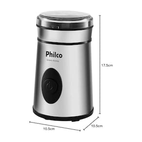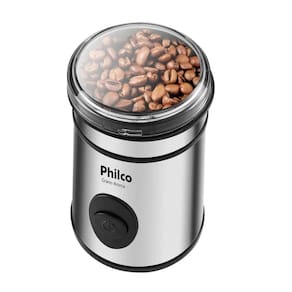 Moedor de café elétrico Philco Grano Aroma com capacidade para 50g de grãos, lâminas em aço inoxidável, base antiderrapante, colher dosadora e corpo em inox.Vendido por BWG SHOP MKT e entregue por Casas Bahia