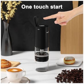 Moedor de café elétrico portátil com 5 configurações de moagem, recarregável por USB, design transparente, operação com um botão, tecnologia de moagem de cerâmica, livre de BPA.Desmontável