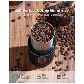 Moedor de café sem fio e portátil O moedor de café elétrico DmofwHi foi projetado para ser sem fio e recarregável por USB. O moedor de café sem fio vem com uma grande capacidade para uso repetido. Um indicador de bateria ajuda a verificar a bateria sempre que você moer. Coloque o moedor de café em sua mala e aproveite o café de qualidade durante a viagem. Moagem potente e uniforme O potente motor de 200 W do pequeno moedor de café para acampamento da DmofwHi permite que sua moagem seja sempre mais fina e uniforme. Uma tigela de moagem removível de 170 ml pode fornecer pó de café moído suficiente para obter 12 xícaras de café ao mesmo tempo. Moer sem espirrar O moedor de café portátil vem com uma tampa anti respingo que evita efetivamente que o pó de café espirre em todos os lugares durante o trabalho. Despeje os grãos na tigela do moedor de grãos de café, cubra a tampa, pressione para ativar a moagem e você obterá rapidamente um café moído uniformemente. Você pode monitorar o pó de café desejado conforme desejar, com base em 6 segundos para pó grosso, 10 segundos para pó médio e 15 segundos para pó fino. Tigela de moagem destacável para limpeza rápida O mini moedor de café elétrico vem com uma lâmina de moagem de aço inoxidável 304 de qualidade alimentar e tigelas removíveis que têm a vantagem de segurança do material, durabilidade e desempenho de moagem superior. O copo destacável pode ser removido da base para enxaguar diretamente. Uma escova especializada ajuda você a limpar completamente o pó que facilita a limpeza para você. Moer silenciosamente pela manhã O moedor de café compacto é equipado com um motor de baixo ruído, que é mais silencioso do que a maioria dos moedores de café elétricos tradicionais do . Você não precisa se preocupar em criar muito barulho e perturbar sua família ao moer café moído fresco no início da manhã