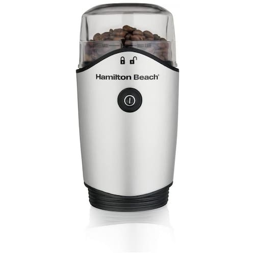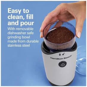 Moedor de café Hamilton Beach, lâminas de aço inoxidável, câmara de moagem removível, armazenamento de cabo oculto, controle de velocidade.Desmontável