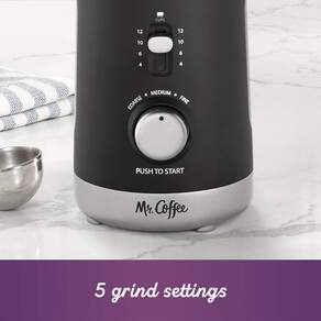 fino | médio | grossoMr. Coffee Moedor de café automático com 5 predefinições, capacidade para 12 xícaras, preto – ideal para uso doméstico e amantes de café expresso