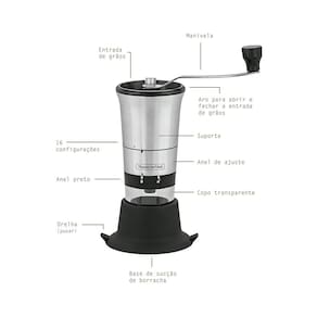Observação: Com base em silicone para apoiar na mesa e fixar, enquanto acontece a moagem do café