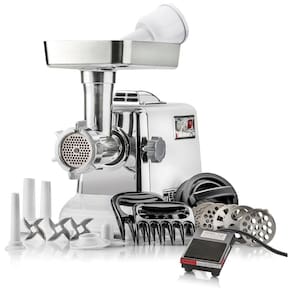 O pacote completo de moagem doméstica STX Megaforce Série Platinum Refrigerado a Ar patenteado, modelo STX 3000 MF PL apresenta um Moedor Elétrico de Máximo Watt de 1200 Watts para Trabalho Pesado, Bandeja de Carne de Alto Volume do Alimentador de Alta Capacidade que facilmente comporta mais de 3 libras. de carne. Combinar o Trado de Carne com a Tecnologia AVI Entrada Variável Avançada e a Bandeja Alimentadora de Alto Volume com de abertura permite facilmente moer 145 a 163 kg de carne por hora, dependendo do tamanho da placa de moagem usada e do tipo de carne sendo moída. 3 velocidades alta, baixa, reversa e um disjuntor para segurança são recursos padrão. Esta série Platinum também inclui Cabeça de trituração de alumínio polido grau alimentício de 1 tamanho 12 e bandeja de carne de alta capacidade, lâminas de corte de aço inoxidável de grau 3 304, 3 tamanhos de placas de moagem, 1 placa de beaner recheio de salsicha, 3 Tamanhos dos Tubos de Recheio de Salsicha , e , 1 Acessório para Fazer Kubbe , Kibbe e 1 Empacotador , Recheio de Carne de Palma Fácil de Usar. LEIA ISTO NÃO moa tendões, vegetais, plantas, nozes ou frutas de animais com este moedor. Este é um moedor de carne doméstico resistente e não se destina ao uso . Este moedor de CARNE NÃO IRÁ GRINAR OSSOS Embora você possa ver comentários , análises de clientes indicando o contrário, os resultados não são consistentes e você provavelmente ficará insatisfeito com a compra deste produto Marca: Não Informado