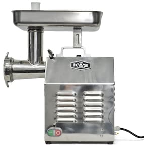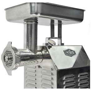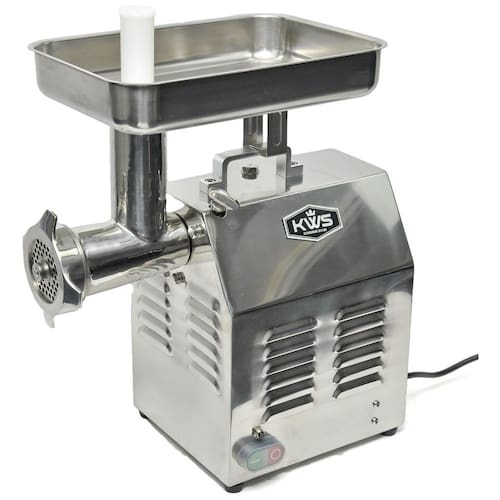 Aço inoxidável de alta qualidade 485 lbs. de carne por hora ou 8 lbs. por minuto Furos de calor dispersos em ambos os lados Aprovação CE Potência do motor de 900 watts 1 1, 2 cv