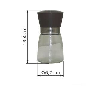 Moedores de cerâmica com regulador de tamanho do grão, para que seja ajustado conforme seu gosto. Possui engrenagens de alta resistência, proporcionando maior durabilidade. Recipientes de vidro e tampas de plástico. Capacidade de 200 gr para sal e 100 gr para pimenta.