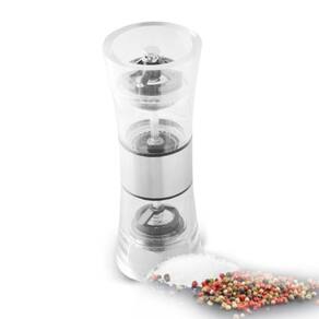 Moedor de pimenta e sal grosso em inox - Vai deixar sua mesa sofisticada e elegante. Possui compartimento para sal e pimenta separados, incolor facilita a visualização do tempero. Melhor dispersão do sal e da pimenta ao temperar os alimentos. Engrenagem do moedor em cerâmica que possui alta resistência e é livre de corrosões, impedindo que o sal estrague o moedor. Pode ser com qualquer tipo de tempero refinado. (pimenta, sal grosso, açúcar e etc). Em um mesmo produto você tem o moedor de sal e de pimenta, com dois compartimentos separados. Mantenha sempre a pimenta limpa e seca, evitando qualquer com água. Ideal para todos os tipos de temperos secos. Ideal para uso em casa, hotel e restaurante.