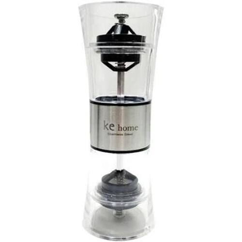 Moedor De Pimenta Moinho Em Cerâmica Ke Home Moedor duplo de pimenta e sal grosso em inox, vai deixar sua mesa sofisticada e elegante. Possui compartimento para sal e pimenta separados, incolor facilita a visualização do tempero. Melhor dispersão do sal e da pimenta ao temperar os alimentos. Moedor em cerâmica que possui alta resistência e é livre de corrosões, impedindo que o sal estrague o moedor. Pode ser usado com qualquer tipo de tempero refinado. (pimenta, sal grosso, açúcar e etc). Em um mesmo produto você tem o moedor de sal e de pimenta, com dois compartimentos separados. Medidas aproximadas do produto - Comprimento: 20 cm - Altura: 7 cm - Largura: 8 cm - Peso: 280 g