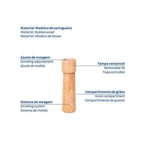 Moedor de Sal e Pimenta Realce Madeira Seringueira 13 cm Tramontina - Especificações Técnicas