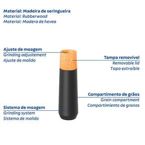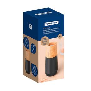 Compacto e estiloso, o moedor de sal e pimenta Tramontina Realce em madeira seringueira preto de 12,7 cm é ideal para quem busca eficiência em um utensílio prático. Com capacidade para 25 g de sal grosso ou 10 g de pimenta, ele possui ajuste de moagem e engrenagens de alta qualidade, garantindo elegância e precisão. Seu acabamento preto confere um toque contemporâneo à cozinha.