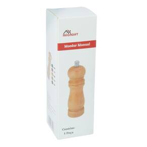 Moedor de Tempero Madeira 16cm - Produto feito com madeira e acabamento em verniz. Pode ser utilizado para moer pimenta do reino, pimenta branca ou qualquer outro tipo de pimenta e sal grosso marinho, sal grosso do himalaia ou sal gema;\n- Com pino para fixação na tampa, engrenagem cerâmica e suporte em aço inox, desmontável para higienização;\nEspecificações:\nMarca : MEGAGIFT\nTipo de material : Madeira\nCores ou Estampa : Marrom\nDimensões do Produto : 16 X 4,5 X 4,5 CM\nDimensões da Embalagem : 16 X 5 X 5 CM\nPeso Bruto (Gramas) : 0.108