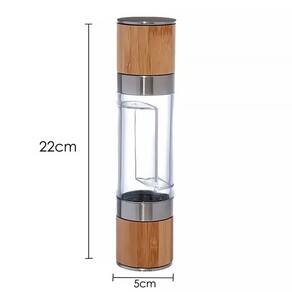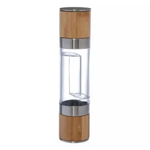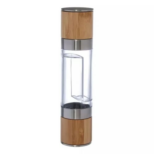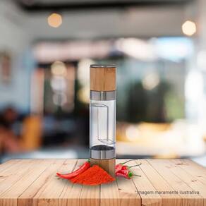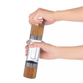 O Moedor Manual para sal e pimenta é projetado para moer grãos de sal e pimenta, permitindo que você ajuste a granulação de acordo com suas preferências de sabor. Seu acabamento em Bambu, aço inoxidável e AS (Acrilonitrila de estireno), e têm um mecanismo de moagem na parte superior que é girado manualmente para moer os temperos.