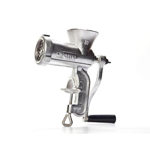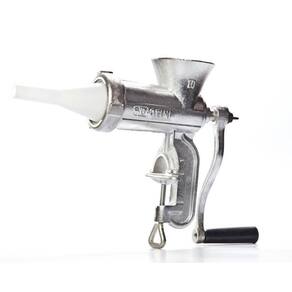 PICADOR DE CARNE B10- Utilidade: Moer carne, legumes e temperos.- Acompanha funil para embutidos, disco de moagem de 8mm e disco para extrusão de doces- Fixação em bancadas de até 3,5 cm de espessura.- Composição: Aço carbono, ferro fundido e polipropileno. Código: 001231Modelo: B10Dimensões(cm): 21(C) x 11(L) x 33(A)Peso Líquido / Bruto: 5 kg / 5,1 kgProdução De Até 20 kg/h