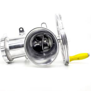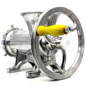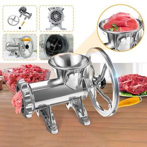Este moedor permite que você trabalhe com diversos tipos de carne. Você poderá preparar hambúrguer, almôndegas, carne moída e outras diversas receitas, de forma artesanal, com sabor caseiro, utilizando a carne de sua escolha e confiança. Higiene e praticidade são mais algumas das qualidades deste moedor. Possui garra, que permite que ele seja facilmente fixado em mesas e balcões. Após a utilização, você poderá desmontá-lo facilmente para limpar e guardar.Sua utilização pode ser manual com acionamento pela manivela acoplada ao volante, mas permite também a utilização com motor, prendendo uma correia ao volante. (NÃO INCLUI MOTOR, MESA NEM CORREIA. O PRODUTO À VENDA É SOMENTE O MOEDOR E INCLUI MANIVELA, VOLANTE E 2 DISCOS - 5mm E 7mm).Fácil de desmontar e limpar.Compacto e leve pode ser facilmente guardado ou levado para qualquer lugar.USO E MANUTENÇÃO:Ao utilizar o moedor, corte a carne em pequenos cubos de aproximadamente 2cm e retire membranas, nervos, tendões e peles. Para facilitar o processo de moagem, pode-se pressionar a carne na boca da máquina com um cilindro de aproximadamente 5cm de diâmetro, como um rolo de madeira, por exemplo (este objeto não acompanha o produto).O fio da navalha cruzeta e o disco podem ser melhorados utilizando folhas de lixa para metal grão 150 ou 180. Para isso, apoie a lixa sobre uma superfície plana e faça movimentos circulares em ambos os lados do disco, até que fique brilhante. Na navalha cruzeta, também faça movimentos circulares sobre a lixa, com a base plana virada para baixo.Após cada utilização, limpe e seque o moedor e suas peças para evitar a oxidação.Marca: LorbenCor: PrateadoMaterial: Alumínio e Ferro fundidoTamanho do moedor: 22Modelo: IndustrialDisco e navalha: Ferro fundido / Lâmina: Alumínio Furação dos discos: 5mm e 7mmBoca redonda para maior capacidadeDiâmetro do volante: 19cmIncluso:1 Moedor1 Manivela 1 Volante2 Discos (Furação 5mm e 7mm)Tamanho do produto: 24x17x17cmPeso: 2,075kgTamanho da embalagem: 20x15x23cmPeso: 2,215kgCódigo do produto: GT781Imagens ilustrativas. As tonalidades podem variar. Os objetos de ambientação não acompanham o produto.