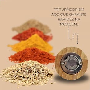 Moedor pequeno de especiarias manual em Bambu. Seja agora mesmo um Masterchef, o verdadeiro segredo para servir refeições deliciosas é o tempero. Adquira já este utensílio ideal para moer Pimenta do Reino branca ou preta, Pimenta Rosa, Pimenta Jamaica, Pimenta Síria, Pimenta Calabresa seca, Sal Grosso, entre outros.
