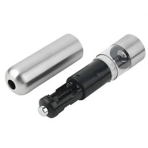 Moedor eléctrico de sal ou pimenta Aço Inox Com uma leve pressão no botão superior você distribui pimenta em seus pratos.Também pode salgar sua carne de churrasco com sal grosso moído. Use-o sua mesa e dê um requinte na sua refeição.Fácil de usar e fácil de limpar. Especificações: - Regulagem para o tamanho dos grãos. - Utiliza 4 pilhas AA não acompanham . - Corpo externo em aço inox. - Mecanismo interno em cerâmica. - Dimensões 23 x 5,5 cm. - Peso 280 g. Contém: 1 Moedor eléctrico de sal ou pimenta Aço Inox Ean: 7898580398166