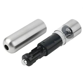 Moedor eléctrico de sal ou pimenta Aço Inox Com uma leve pressão no botão superior você distribui pimenta em seus ém pode salgar sua carne de churrasco com sal grosso moído. Use-o sua mesa e dê um requinte na sua refeiçãácil de usar e fácil de limpar. Especificações/Características do Produto- Regulagem para o tamanho dos grãos. - Utiliza 4 pilhas AA (não acompanham). - Corpo externo em aço inox. - Mecanismo interno em cerâmica. - Dimensões 23 x 5,5 cm. - Peso 280 g. Item Incluso: - 1 Moedor eléctrico de sal ou pimenta aço Inox