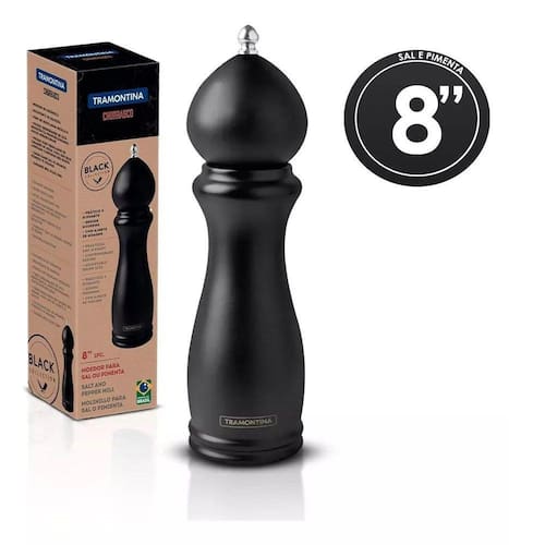 "Moedor de cerâmica com pino regulador de tamanho de grão, para que seja ajustado conforme seu gosto. Pino de regulagem metálico. Recipientes de madeira. Possui engrenagem de alta resistência, proporcionando maior durabilidade. Capacidade para sal de 65 gramas e pimenta de 35 gramas."